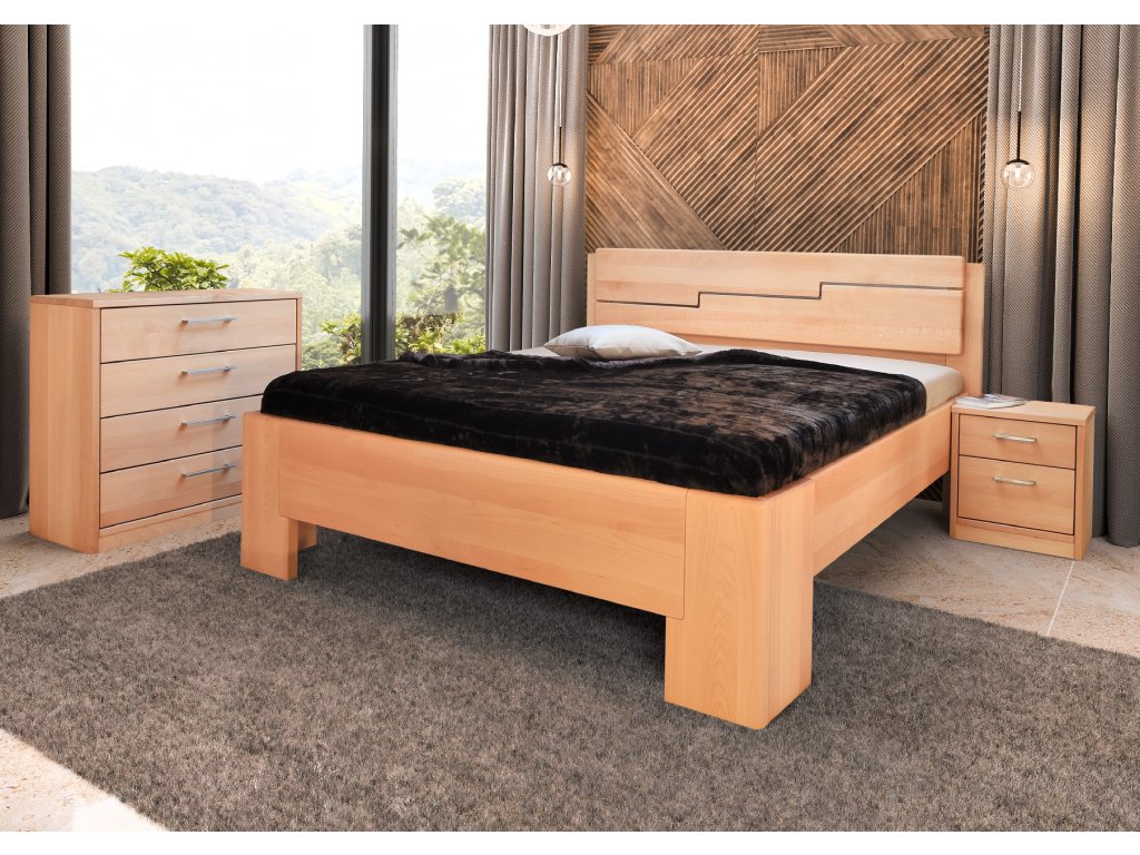 Postel Manhattan 3 je moderního vzhledu s pevnou a stabilní konstrukcí. Je vyrobena z masivního buku v typu průběžka, který na první dojem působí celistvějším dojmem a nechá tak vyniknout kresbu dřeva.
