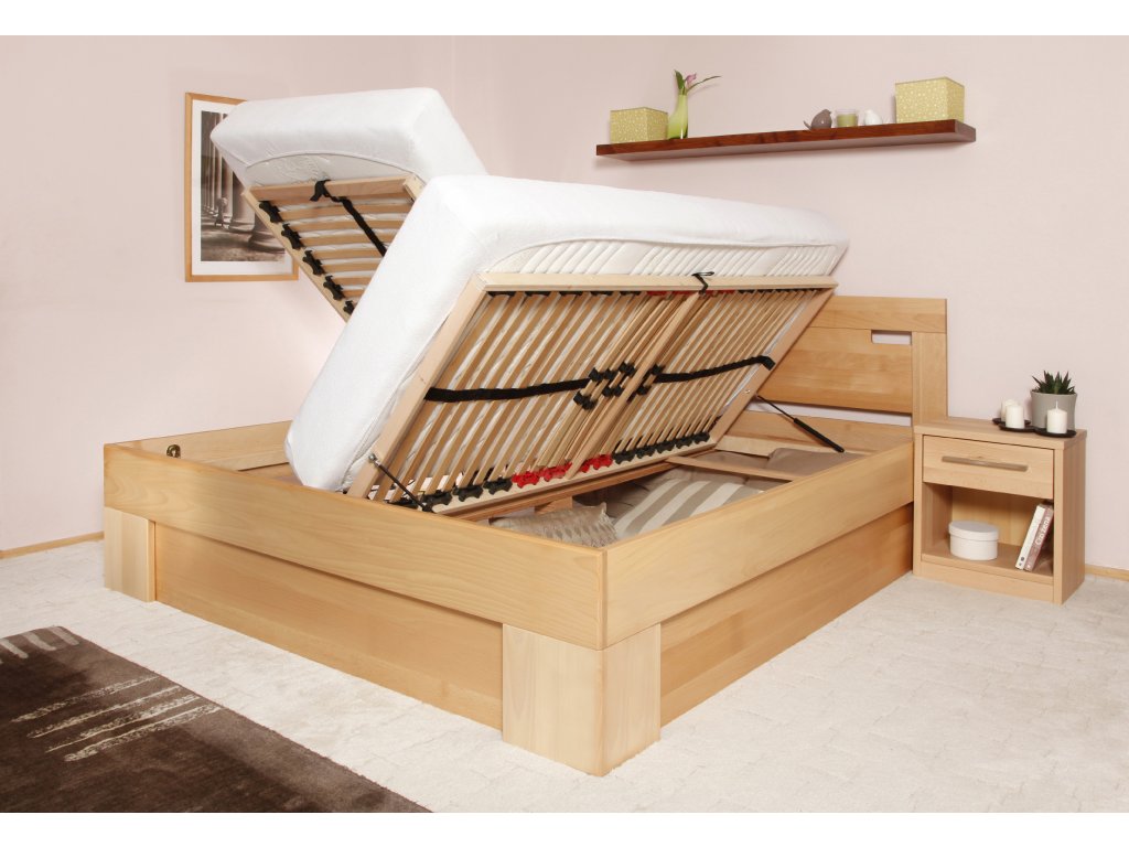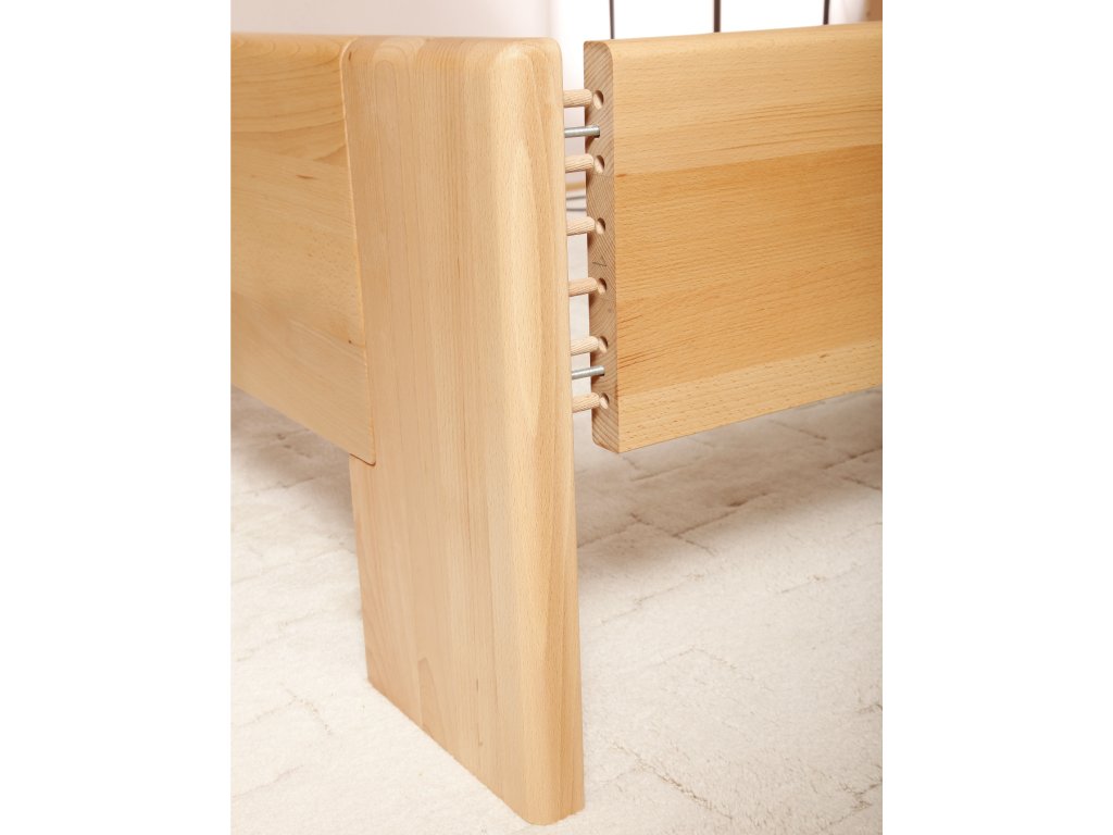 Postel Varezza 6-A je moderního vzhledu s pevnou a stabilní konstrukcí. Je vyrobena z masivního buku v typu průběžka, který na první dojem působí celistvějším dojmem a nechá tak vyniknout kresbu dřeva.